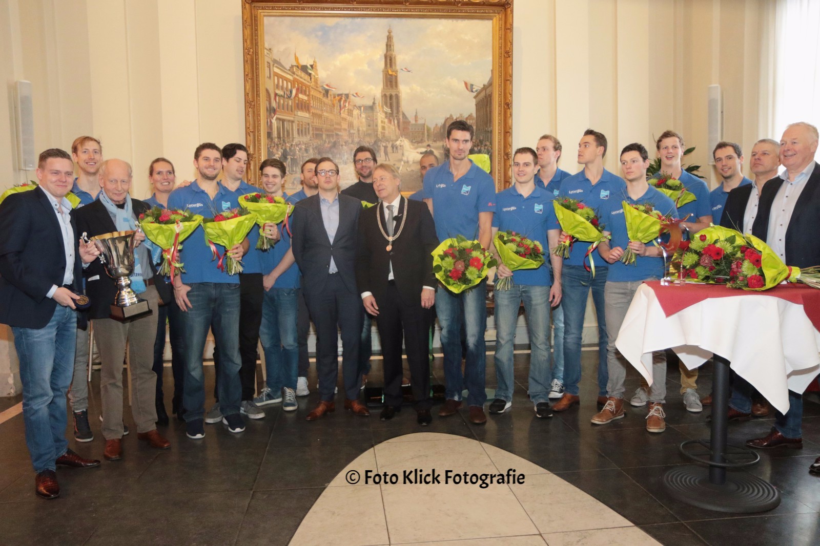 Op het Stadhuis van Groningen heeft Abiant Lycurgus dinsdagmiddag tijdens een ontvangst door burgemeester Peter den Oudsten en wethouder Paul de Rook de sportpenning ontvangen. Sportpenningen worden uitgereikt voor bijzondere sportprestaties op het hoogste niveau. Het winnen van de landelijke volleybal beker valt daaronder.