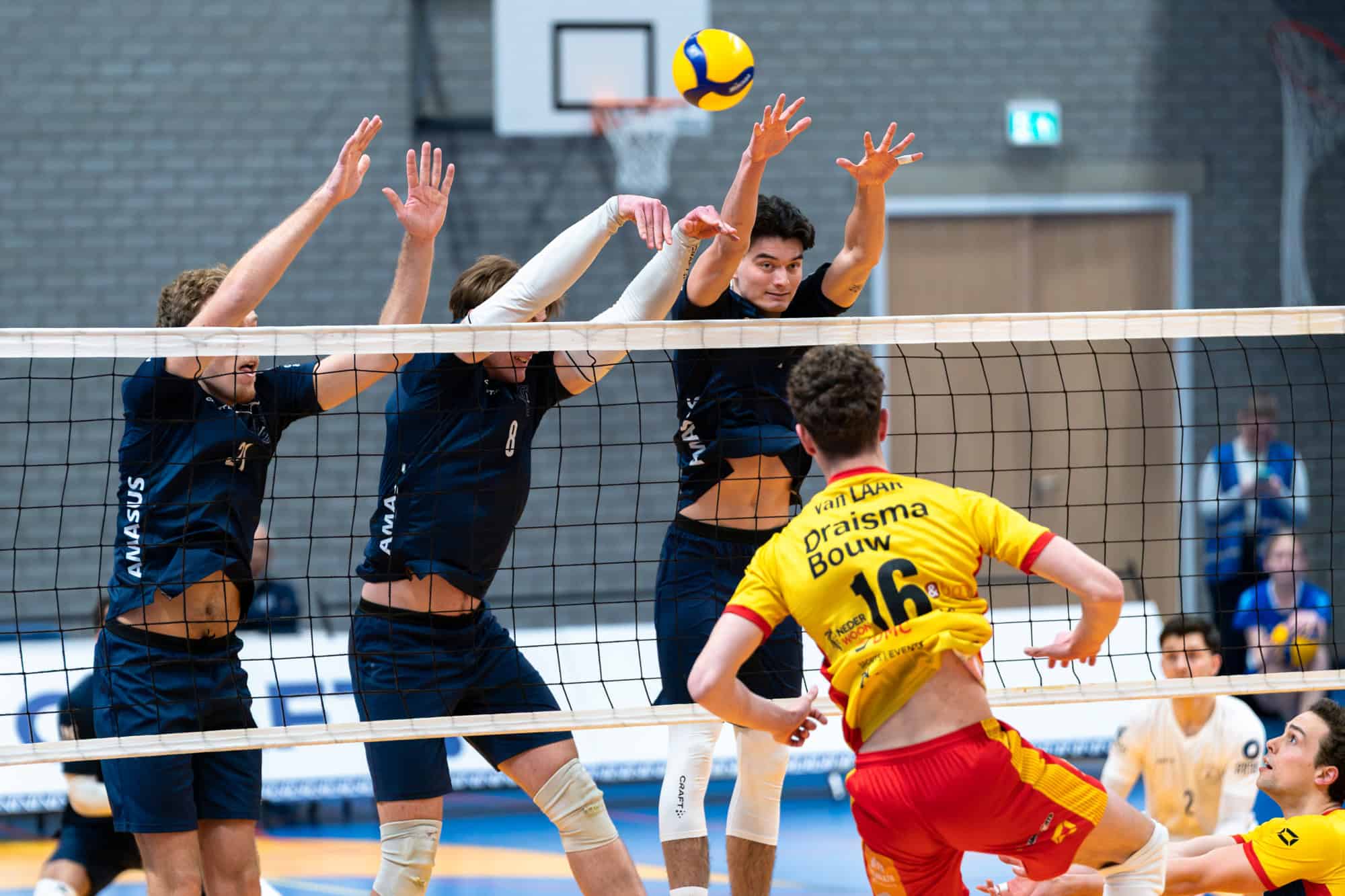 Dat gebeurde met Martijn Brilhuis, Julien Lecat, Jo Gladsoy Sunde, Ian Parish, Elliot Collard, Darian Picklyk en Gijs van Solkema in de basis. Aan het begin van set drie bij een 8-3 achterstand kwam Sebastian Pozo Herandez in het veld voor Sunde. Ook Tieme de Jong en Lars Geerlings kregen in set drie een rondje speeltijd. Mats Wiegers kreeg een servebeurt en Rodrique Manuohalalo kwam Collard, die in de eerste set sterk speelde vervangen. Brilhuis was Man van de Wedstrijd met 29 punten.