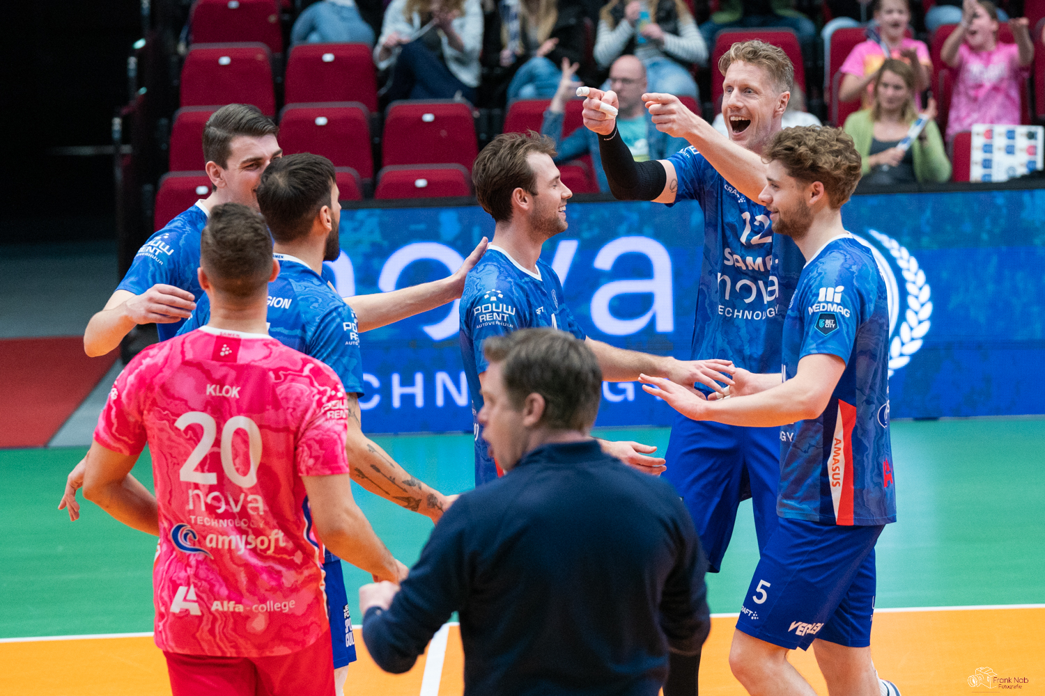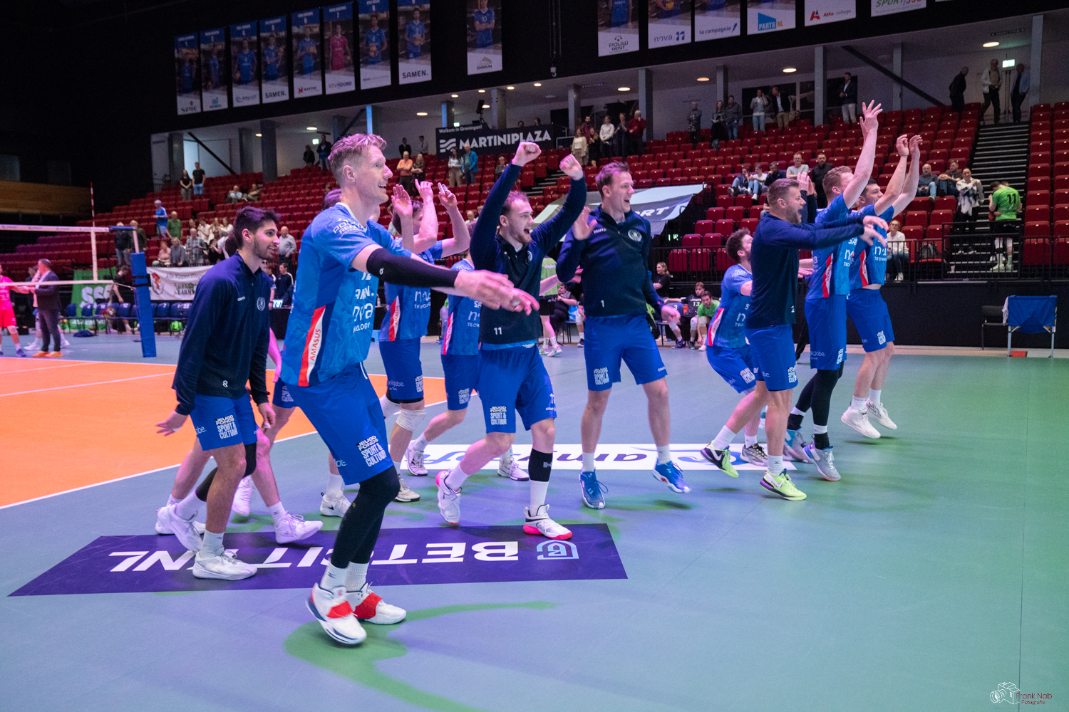 Zo was er opluchting en blijdschap bij de spelers van Nova Tech Lycurgus na een spannende en bij tijden moeizame reeks tegen SSS. Veel tijd om te vieren is er niet. De play-off trein dendert door. De eerste halte is dinsdagavond in Apeldoorn voor de eerste halve finale tegen Draisma Dynamo. Aanvang 20.00 uur.