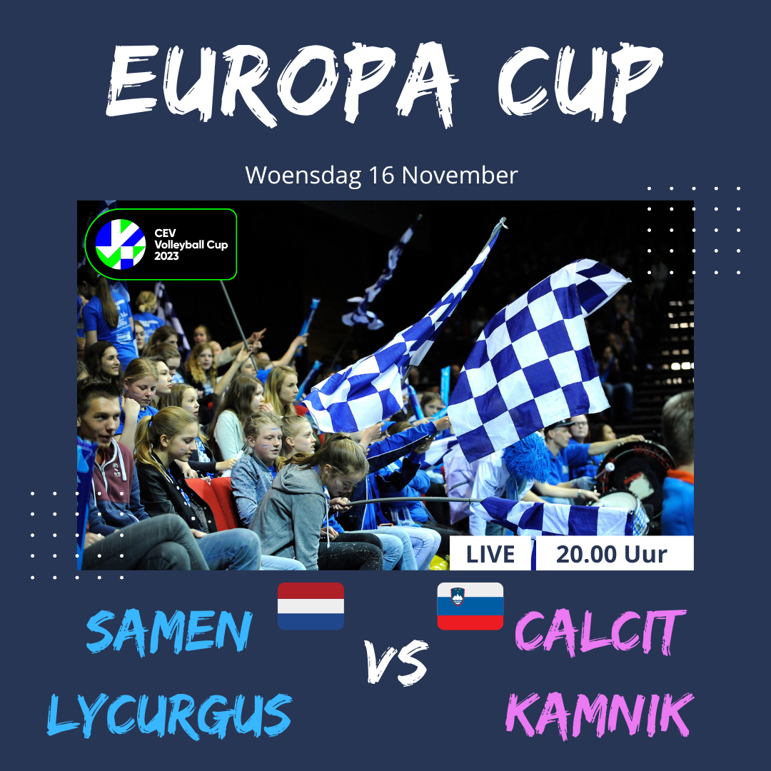 De tegenstander van Samen Lycurgus in de zestiende finale van de Europese CEV Cup is bekend. De opponent is Calcit Kamnik. De Slovenen waren in de vorige ronde over twee duels te sterk voor SK Zadruga Aich Dob uit Oostenrijk. Op woensdag 9 november speelt Samen Lycurgus eerst uit. De return is op 16 november om 20.00 uur in het Alfa-college Sportcentrum. Bestel hier je kaarten.