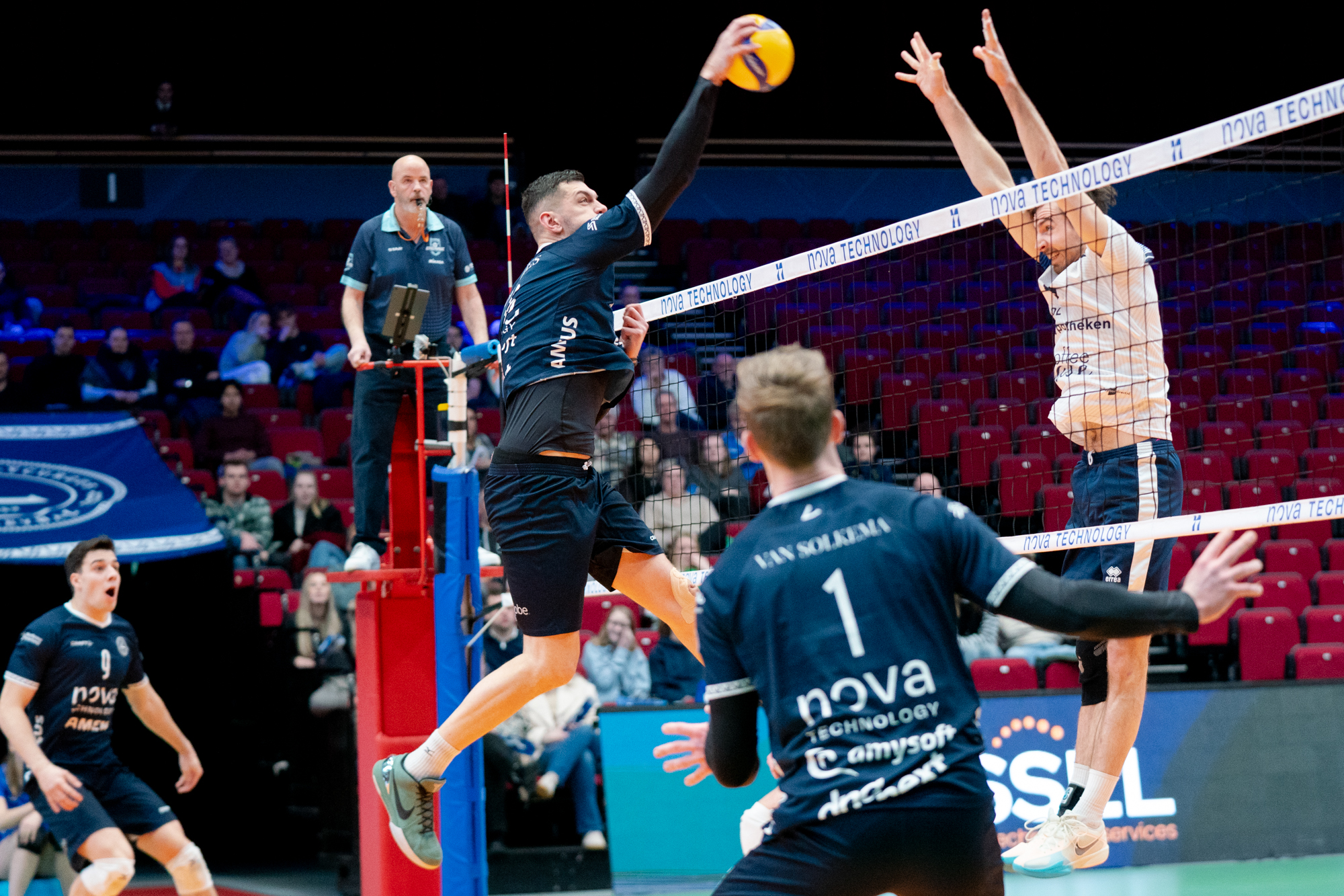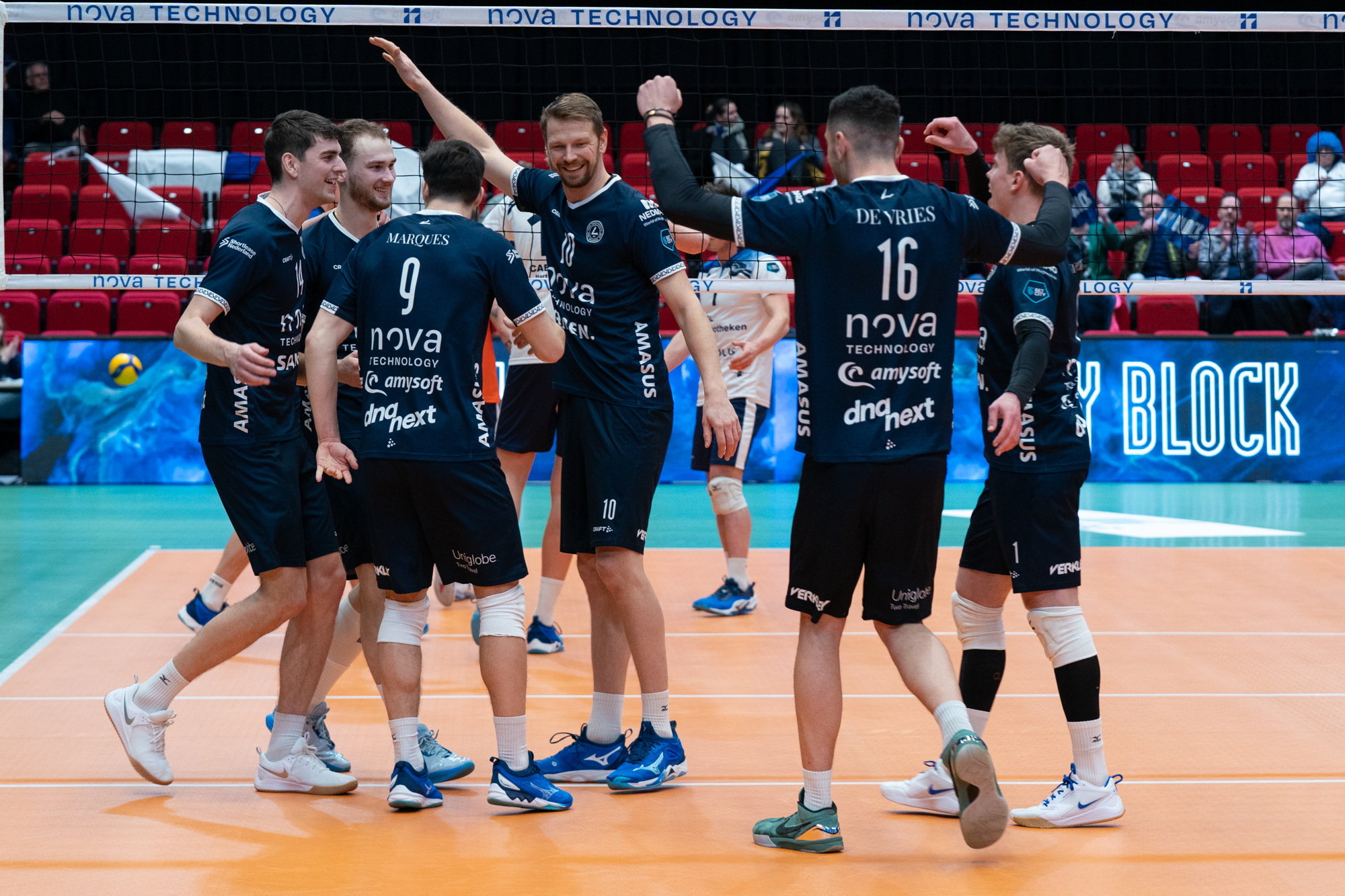 Er zaten zeker ook goede elementen in het duel. Zo serveerde De Vries de stand in de tweede set van 9-9 naar 15-9. Dat vormde de basis voor ruime winst in die set. Een ace van Margues op setpoint bekroonde de sterkste fase van de wedstrijd met setwinst. In de derde set werkte Nova Tech Lycurgus nog even een 16-12 achterstand weg en speelde een sterk laatste deel van die set. Via invaller Martijn Brilhuis kwam een 20-19 voorsprong op het scorebord. Waarna de score doorliep naar 24-20. Drie setpoints gingen verloren, maar Marques sloeg net op het juiste moment toe; 25-23.