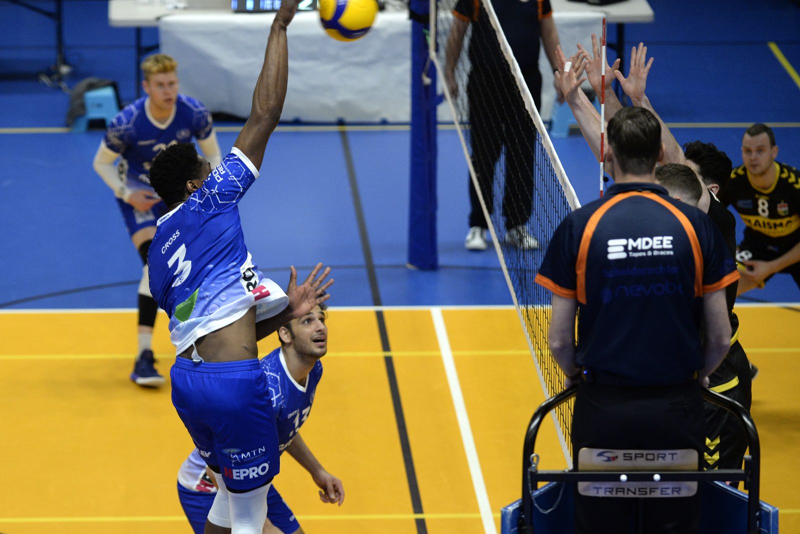 Coach Arjan Taaij stuurde dezelfde basis het veld in als afgelopen woensdag. Jerome Cross, Bennie Tuinstra, Erik van der Schaaf, Dennis Borst, Hossein Ghanbari, Steven Ottevanger en Luke Herr. Begonnen en klaarden het karwei. Ottevanger liep donderdag op de training tegen liesklachten aan, maar de libero kon spelen en hij deed dat zoals we gewend zijn. Met veel energie en inzet. De start was veelbelovend. Het stond in no-time 12-4. Dynamo kwam nog wel terug tot 20-18, maar de 21-18 van Tuinstra zorgde voor het beslissende gaatje van drie punten. Het was uitblinker Cross die het benutte setpoint op zijn naam kreeg.