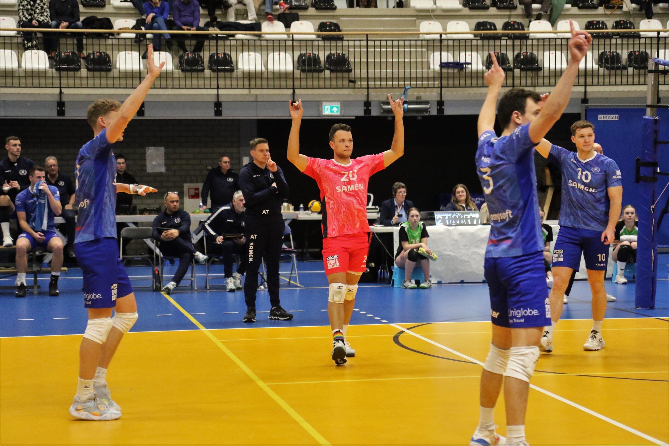 Uitgangspunt was om tegen de formatie die volgend jaar niet terugkeert in de Eredivisie, omdat het te lastig is om aan alle licentievoorwaarden te voldoen, met 3-0 te winnen zonder noemenswaardige problemen. Dat lukte, zonder overigens groots te spelen, vrij eenvoudig. Maarten Bartels groeide uit tot man van de wedstrijd. De passer-loper noteerde vijftien punten. Hij speelde agressief en was ook serverend met vier aces op dreef. Bartels speelde op de plek van Ryan Coenen. De aanvoerder heeft door het intensieve programma de nodige pijntjes en kreeg rust van coach Arjan Taaij.