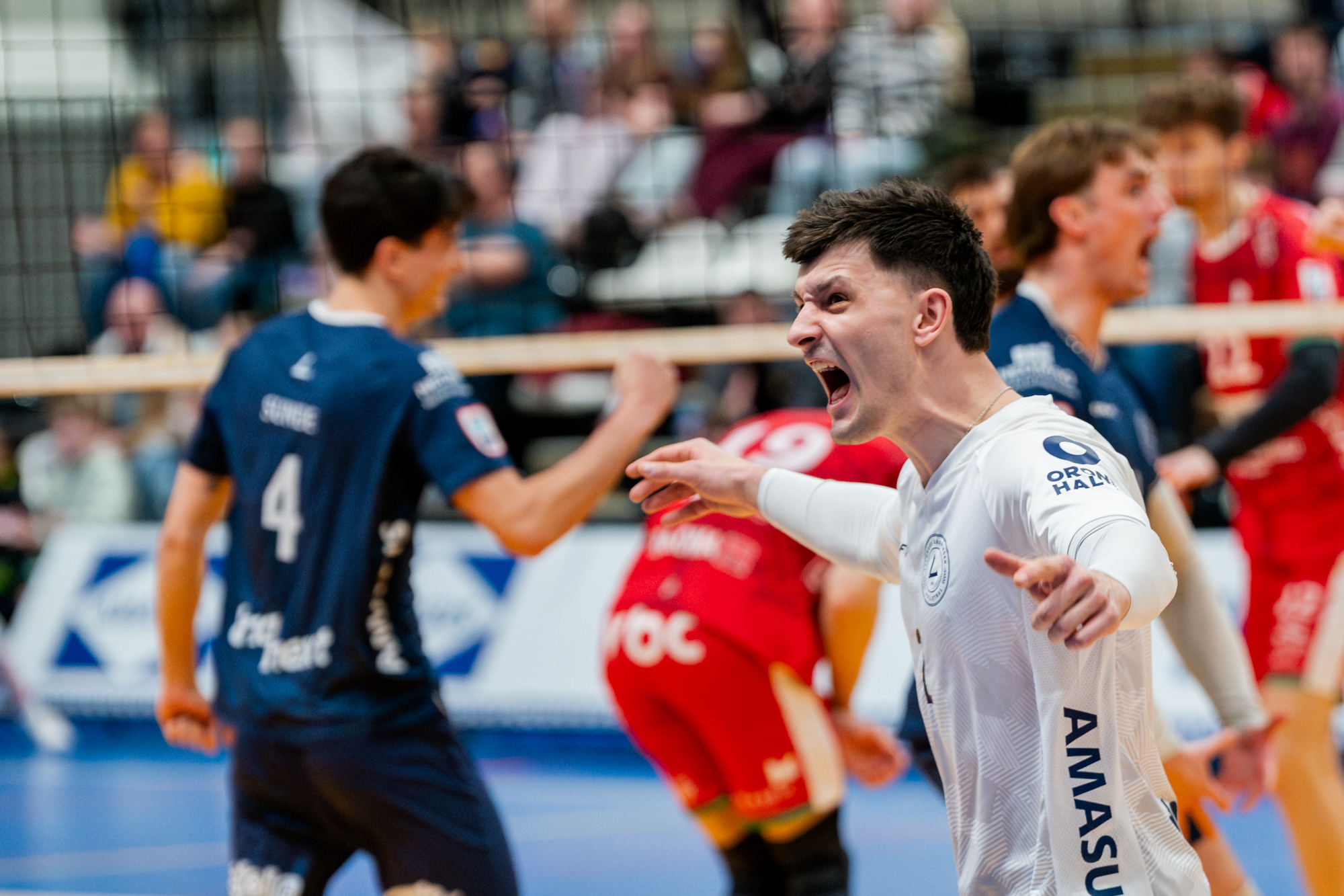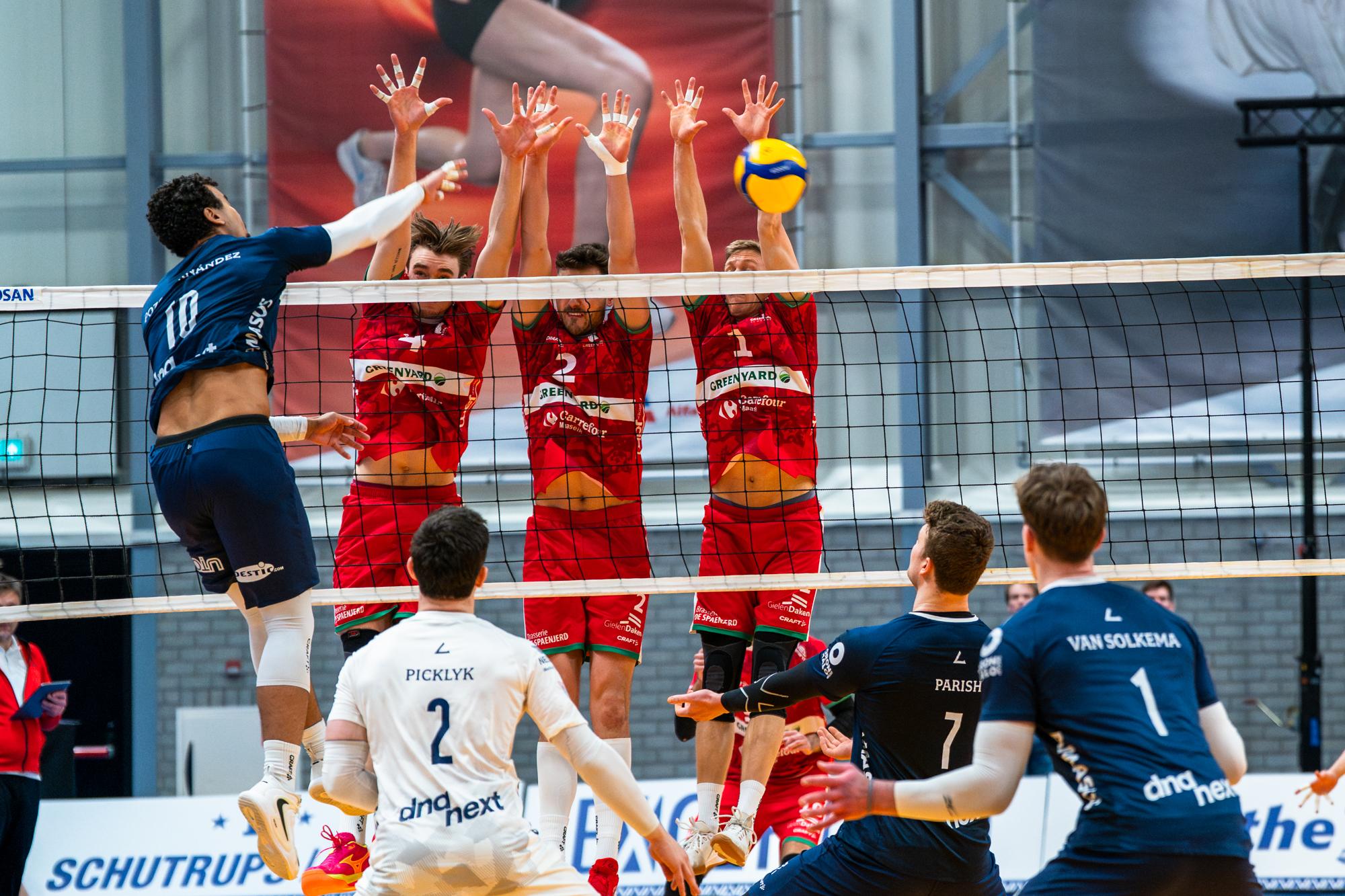 Lycurgus begon met Martijn Brilhuis, Julien Lecat, Jo Gladsoy Sunde, Ian Parish, Elliot Collard, Darian Picklyk en aanvoerder Gijs van Solkema aan het duel met de Belgen. Halverwege de tweede set kwam Sebastián Pozo Hernández Sunde vervangen. De Noor had duidelijk zijn dag niet en had vooral moeite met goed serveren. Diep in de derde set verving Rodrigue Manuohalalo Collard op het midden.