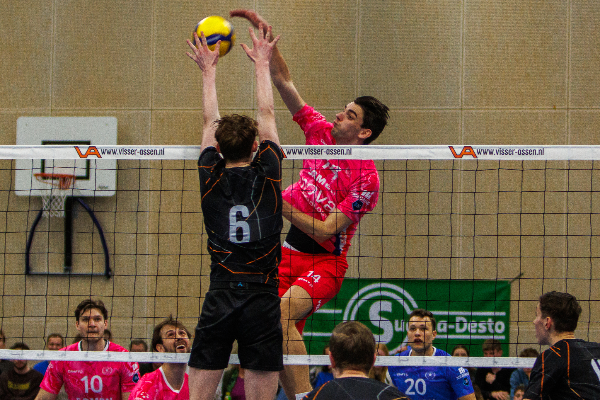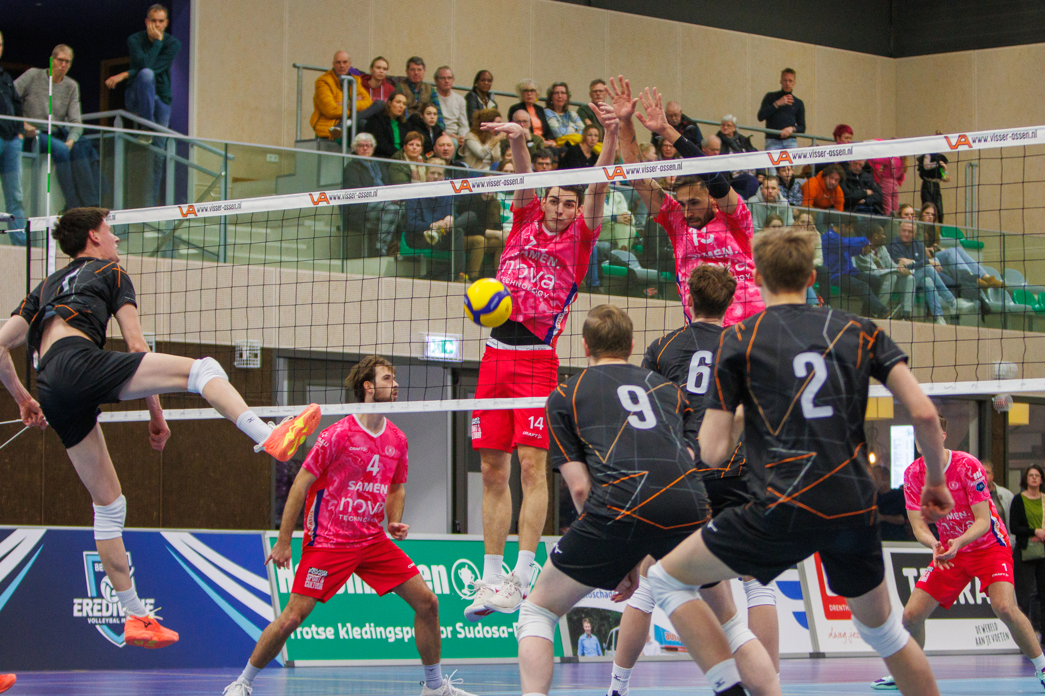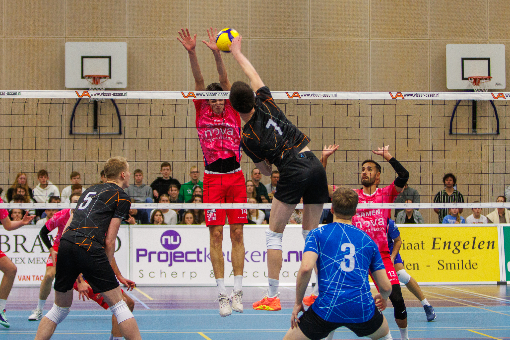 In de eerste set had Nova Tech Lycurgus moeite om ritme te krijgen. De andere samenstelling van de basis speelde daar ongetwijfeld een rol bij. De gasten konden tot 17-16 in de pas blijven, waarna de thuisploeg het eerste laken naar zich toe trok. Sleurink na een rally en een klap van Boer waren twee punten naar 21-17. Die marge leek voldoende, maar Nova Tech Lycurgus liet de talenten terugkomen tot 22-22. De volgende drie punten gingen wel naar de thuisploeg. Martinez, een ace van de voor de service ingevallen Sam Gortzak en een blok van Boekhoudt betekende setwinst.