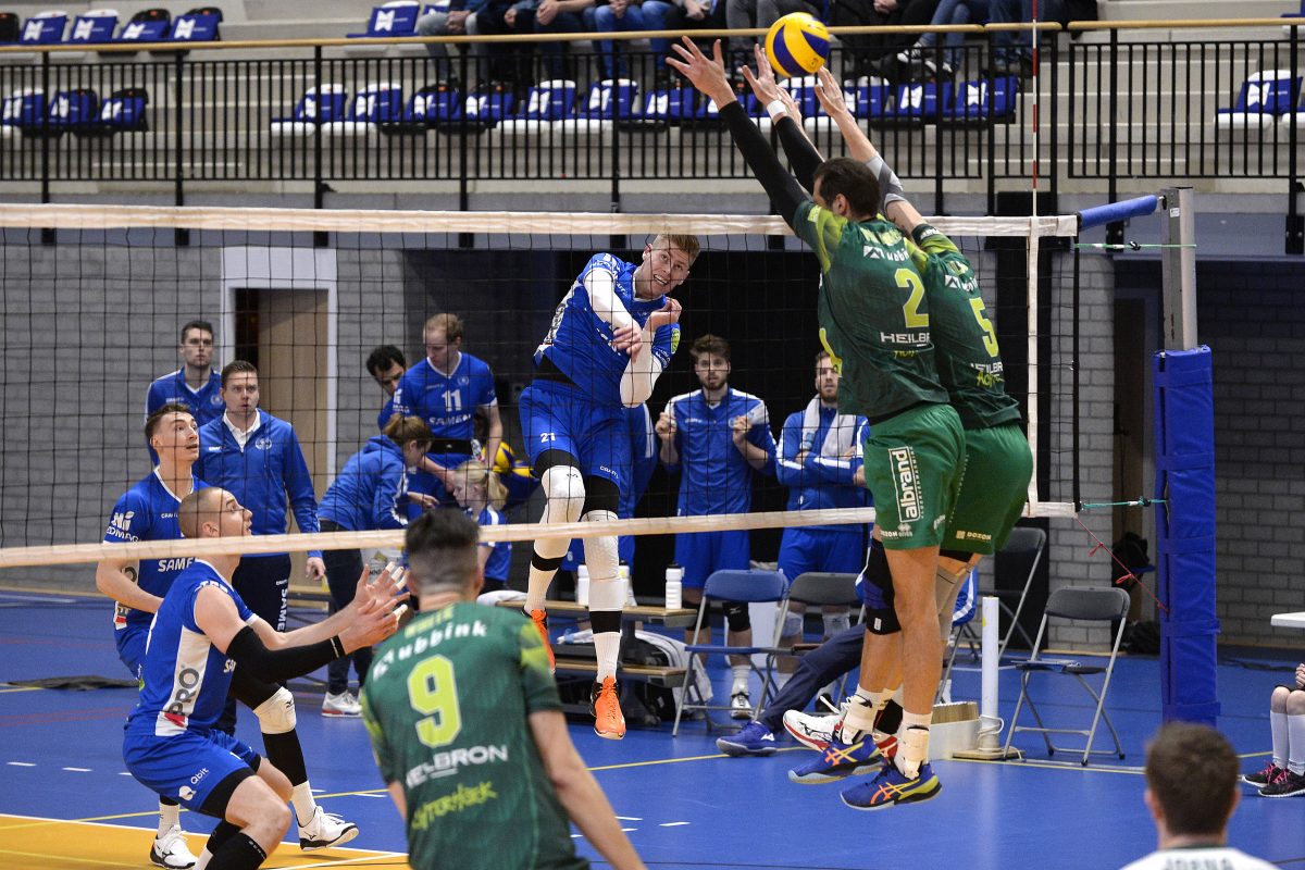 De derde set verliep op dezelfde manier als de eerste. De start was lastig. Misschien ook, omdat Orion nog een stapje erbij deed. Dat leidde tot een 16-8 achterstand. In deze fase speelde Erik van der Schaaf als invaller een goede rol. Zijn eerste bal ging bijna door de vloer. Punt voor punt werd de achterstand ingelopen. En op 21-21 was er weer evenwicht. De slotfase van set drie was beklijvend. Zeven setpoints, waarvan twee matchpoints voor SAMEN. Lycurgus kwamen op het scorebord, maar het lukte net niet om het in drie sets af te maken. Een stopfout betekende; 29-31.